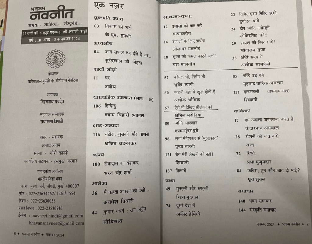 भारतीय विद्या भवन द्वारा प्रकाशित ‘भवन्स नवनीत’ हिंदी पत्रिका जो समय, साहित्य, संस्कृति की धरोहर है और 1952 से प्रकाशित है.