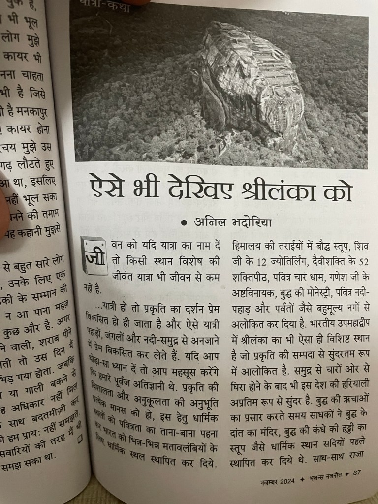 नवम्बर अंक में मेरा एक यात्रा वृतांत प्रकाशित हुआ है जो श्रीलंका यात्रा से संबंधित है.
