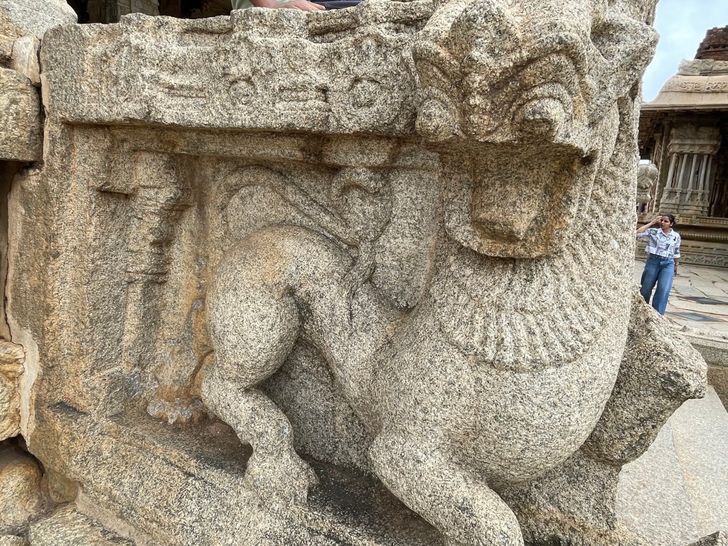 एक अन्य प्रसिद्ध मंदिर का उल्लेख किये बिना हम भी की यात्रा का अनुभव अधूरा ही रहेगा जहाँ जिस मंदिर के विशिष्ट खम्ब संगीत प्रस्तुत करते हैं. म्यूजिकल पिलर से बनाया गया है उस दौर के स्थापत्य कला के निर्मान की अकथनीय गाथा प्रस्तुत करता है. प्राकृतिक संसाधनों से प्रयोग करने की क्षमता लगभग अकल्पनीय है जहाँ इस मंदिर में लगे पत्थरों से को ठोकने से संगीत की विभिन्न ध्वनियां सुनाई पड़ती है. इस प्रकार का कथन मात्र ही आपको विस्मित तो करता ही है, विज्ञान के एक नए आयाम से साक्षात्कार भी कराता है. आज आधुनिकता के दौर में बोहोत सारी अकल्पनीय अविष्कार हमारे आपके देखने में आते हैं परंतु हास्य 5 सौ वर्ष पूर्व जब न बिजली थी ना उच्च श्रेणी के हथियार औज़ार थे तब उस दौर में भी सीमित संसाधनों ke साथ दृढ़ संकल्पित दृष्टिकोण से भविष्य के लिए एक ऐसी अनमोल धरोहर को प्रस्तुत किया है कि देखे बिना मन नहीं भरता इसी मंदिर के हालाँकि इन पत्थरों पर ठोका लगाकर संगीत उत्पन्न करने पे अब पाबंदी है परंतु स्कैनर कोड लगे हैं आपके स्मार्ट मोबाइल फ़ोन से इन पत्थरों के सामने ही स्कैन करके प्रत्येक पत्थर की विशिष्ठ ध्वनि को सुनकर आनंदित हुआ जा सकता है इसी मंदिर के प्रांगण में एक ऐसी रचना स्थापित है जो रथ रूप में है और जिसका न प्रतिकृति भारत सरकार द्वारा जारी 50 रुपया के करेंसी नोट के पीछे अंकित है ऊँचे स्थान पर रथ पर लगे तो ये उस पर लगे रोधक या स्टॉपर को देख राज्य की समृद्धता विद्वता और दृष्टा का भान तो होता ही है आपका हृदय विजयनगर के साम्राज्य की समृद्धता के ऐतिहासिक दृश्य के कल्पना से सराबोर कर देगा जिसकी भूरी भूरी प्रशंसा किए बिना रह नहीं पाएंगे.