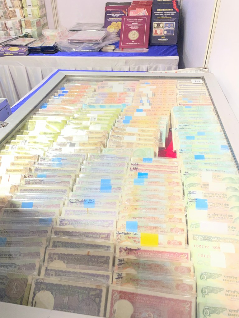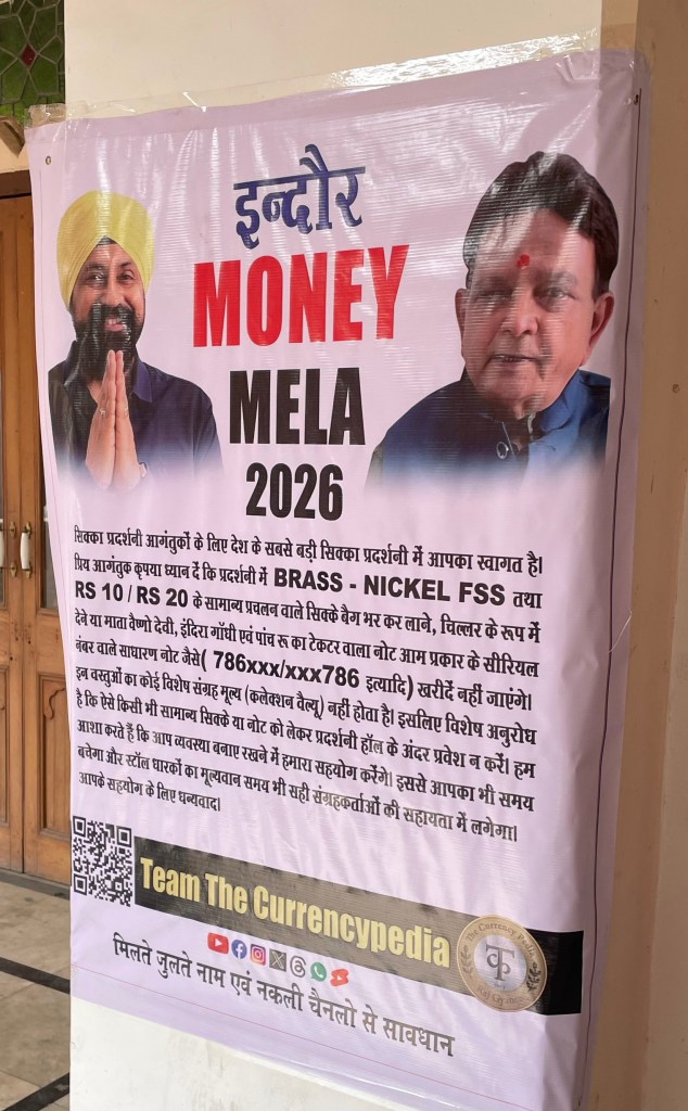 कुछ ऐसा दृश्य है इंदौर के गांधी हाल एमजी रोड पर आयोजित इस मनी फेयर के अस्थाई कैनोपी में लगे काउंटर और सिक्कों की, नोटों की और टिकटों की प्रदर्शनी सह व्यापार हो रहा है. यह मेला 15 फ़रवरी तक तीन दिन के लिए आयोजित है और पुस्तक मेले में घुसते ही सामने करेंसी और कॉइन्स की प्रदर्शनी के दर्शन ने मुझे तो आश्चर्यचकित ही कर दिया जब मैंने मुगलकालीन, हूणक़ालीन, मौर्य क़ालीन सिक्कों की प्रदर्शनी के साथ 1 रुपये के नोटों की पुरानी गड्डी, 2 रुपये के नोटों की पुरानी गड्डी, पाँच और दस रूपए, सौ रुपये यहाँ तक कि 1 हज़ार, २००० के नोटों की गड्डियां जो भारतीय करेंसी की है प्रदर्शित थी और इन पुरानी गड्डियां बिक रही थीं और ख़रीद रहे थे व्यापारी.